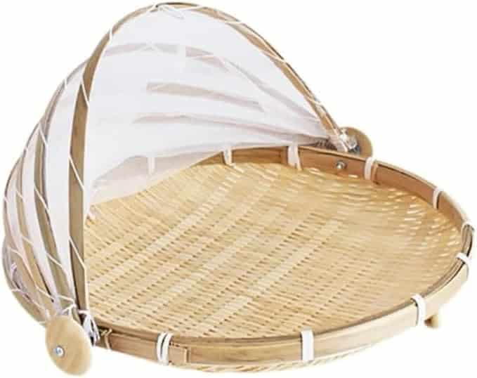 This can be a plate or a bamboo tray. Bamboo trays are great because they allow for better airflow, which helps the plums dry more evenly. If you use a plate, just remember to turn the plums regularly. You can also find trays that come with covers, which are perfect for keeping bugs off your precious plums!