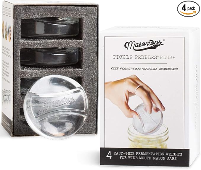 These Masontops Pickle Pebble Glass weights are specifically designed to fit inside mason jars, making them incredibly easy to use and clean.